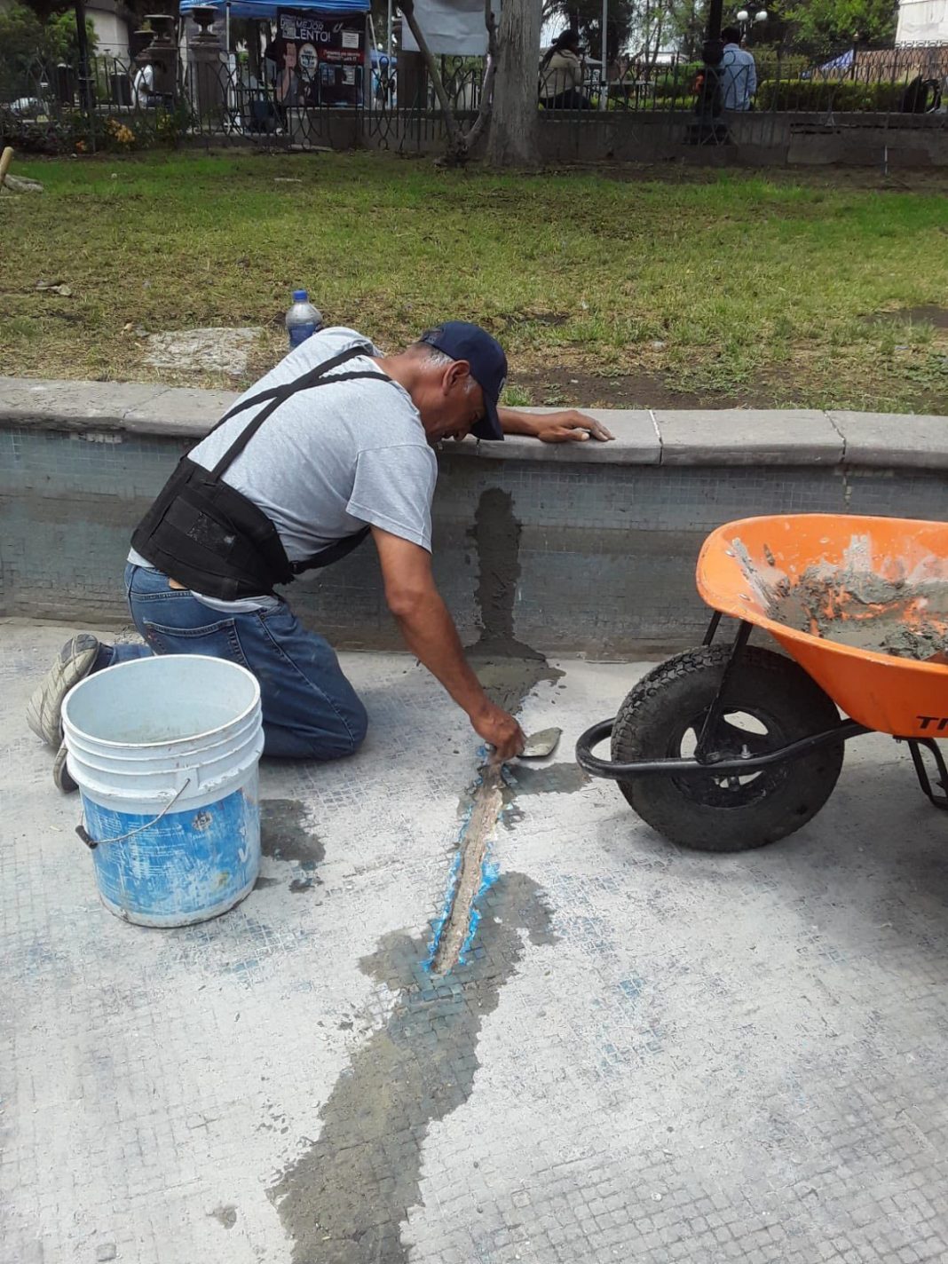 - La Dirección de Servicios Municipales, a través de la Coordinación de Imagen Urbana, realiza trabajos de albañilería para restaurar este emblemático espacio del Centro Histórico.