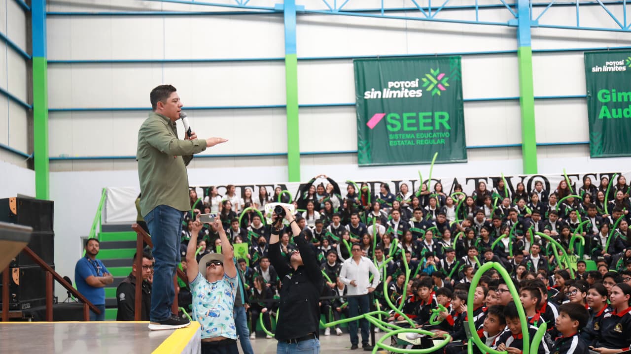 Con el júbilo de la niñez y juventud potosina de la Preparatoria Francisco Martínez de la Vega, la secundaria Profesor y Lic. Guillermo J. Álvarez Briseño, la Primaria Ponciano Arriaga y del Jardín de Niños 20 de Noviembre, el Jefe de Gobierno Estatal dijo que este programa, al igual que los útiles escolares, mochilas, zapatos, uniformes y mochilas sin costo, ayuda directamente a la economía familiar y reduce como nunca la deserción escolar.