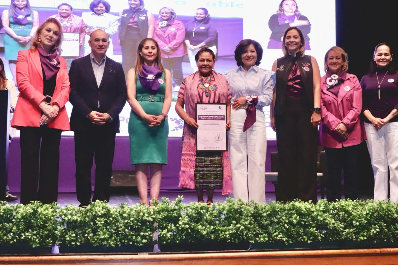 En el marco del Día Internacional de la Mujer, la ciudad de San Luis Potosí recibió a la Dra. Rigoberta Menchú Tum, Premio Nobel de la Paz 1992, quien impartió la conferencia magistral Voces de Resistencia: Mujeres, Justicia y Dignidad. En el evento, celebrado en el Centro Cultural Universitario Bicentenario, reconoció a la Presidenta de México, Claudia Sheinbaum Pardo, como una líder de las mujeres y la exhortó a no bajar la guardia. En esta conferencia, reunió a autoridades, mujeres líderes y ciudadanía para reflexionar sobre los derechos humanos, la igualdad de género y el empoderamiento femenino. Menchú, reconocida mundialmente por su lucha en defensa de los pueblos indígenas y las mujeres, destacó la importancia de la resistencia como motor de cambio social.