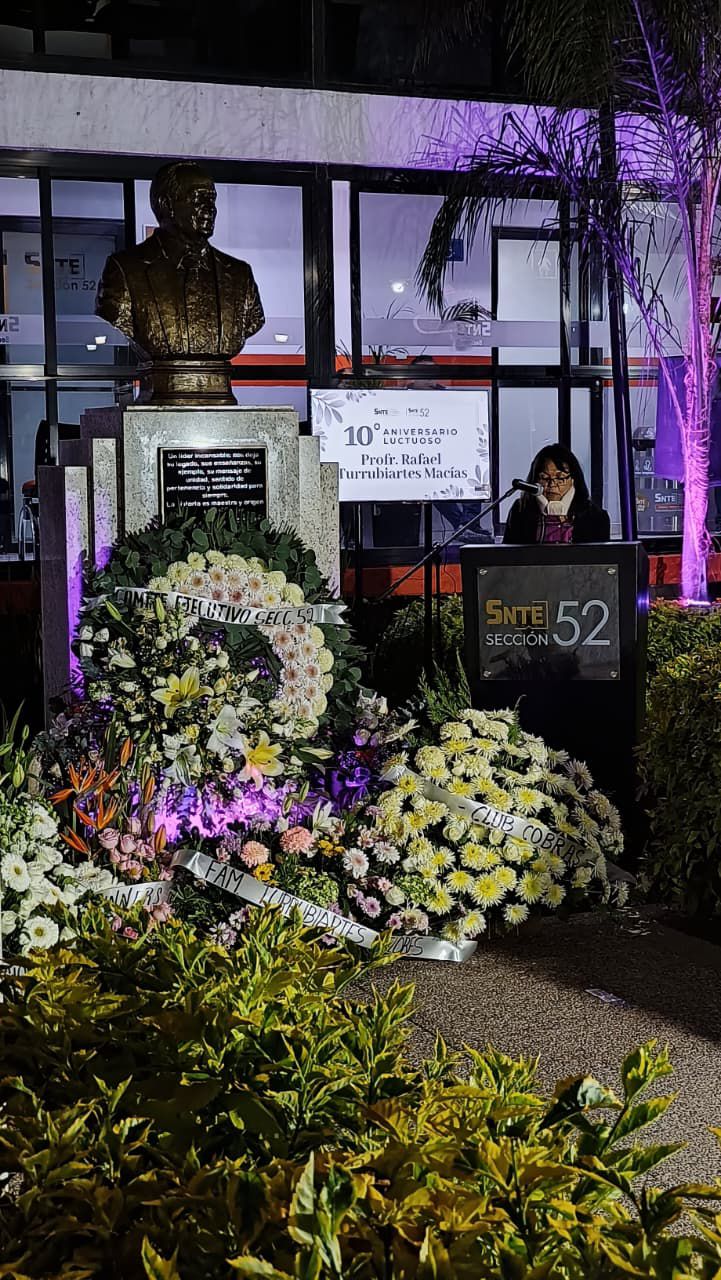 A una década de su partida, la Sección 52 del Sindicato Nacional de Trabajadores de la Educación rindió homenaje al Profesor Rafael Turrubiartes Macías, líder sindical emblemático cuya trayectoria marcó una época de dignidad, firmeza y humanismo en la defensa de los derechos magisteriales.