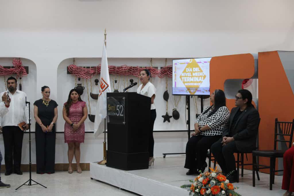 Por primera vez, y por iniciativa de la Sección 52 del SNTE, se llevó a cabo la Ceremonia de Reconocimiento al Día del Nivel Medio Terminal, un acto en el que se honró la trayectoria y dedicación de maestras, maestros y del Personal de Apoyo y Asistencia a la Educación que han entregado su vida al servicio de la educación.