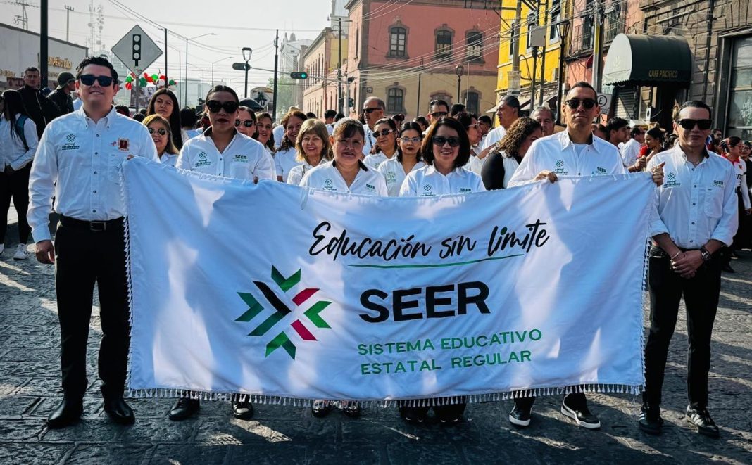 El Sistema Educativo Estatal Regular (SEER) participó en el Desfile Cívico por el CXV Aniversario de la Revolución Mexicana, actividad que refuerza la identidad nacional y el respeto a los símbolos patrios, de acuerdo con la instrucción del Gobernador Ricardo Gallardo Cardona de mantener vivas las tradiciones que fortalecen la cohesión social. Con esta visión sin límites, el Gobierno del Estado impulsa la participación activa de la comunidad educativa en eventos que enaltecen la historia de México.