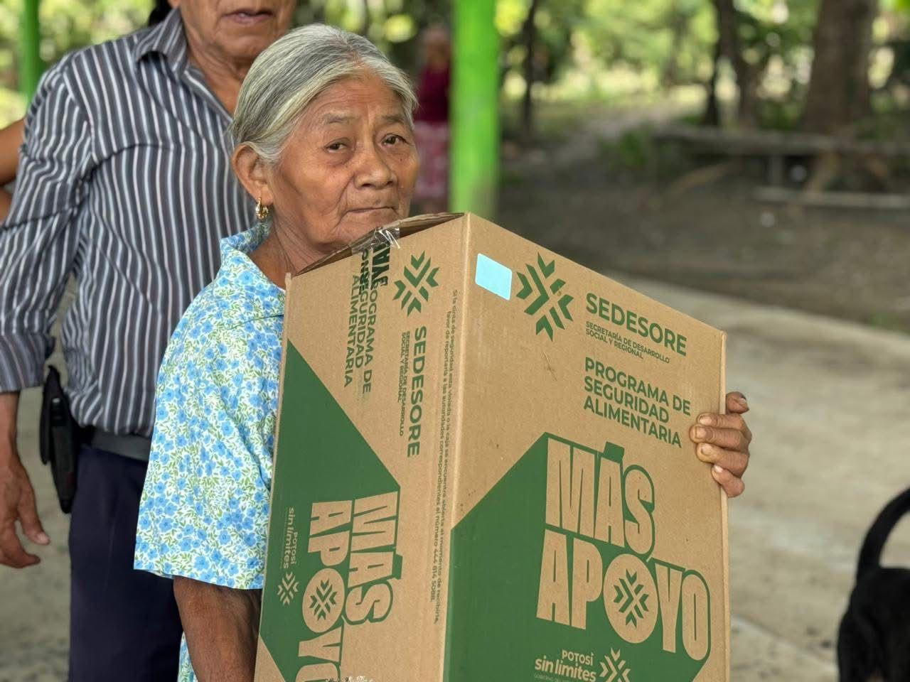 El Gobernador Ricardo Gallardo dio a conocer que actualmente se entrega la Seguridad Alimentaria en los municipios de Ciudad Valles, Xilitla, Tamuín, Coxcatlán, Santa Catarina, Ciudad del Maíz, Zaragoza, Villa Hidalgo, Salinas y Ahualulco, y que acercará este apoyo cinco veces al año, con el objetivo de avanzar en la reducción de los indicadores de pobreza y fortalecer la seguridad alimentaria.