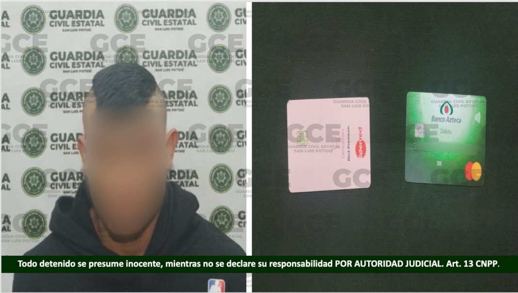 Al presunto, se le aseguraron dos tarjetas bancarias y fue puesto a disposición de la Fiscalía General del Estado.