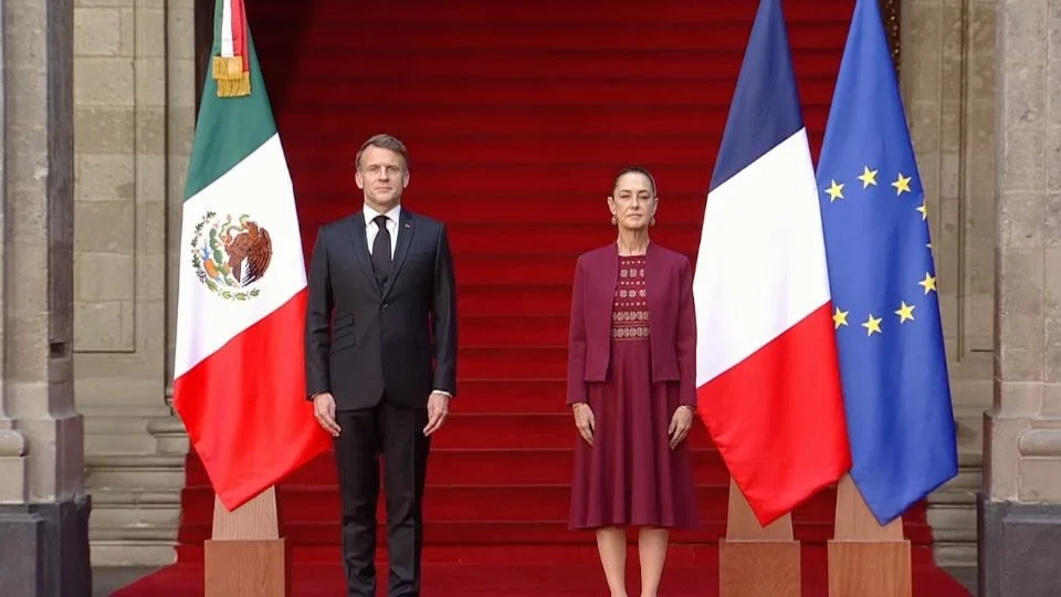 El presidente francés Emmanuel Macron arribó poco antes de las 9:45 de la mañana de este viernes a Palacio Nacional para ser recibido por la presidenta Claudia Sheinbaum previo a su primera reunión como parte de la agenda que encabezarán los mandatarios para fortalecer la relación económica de los países.