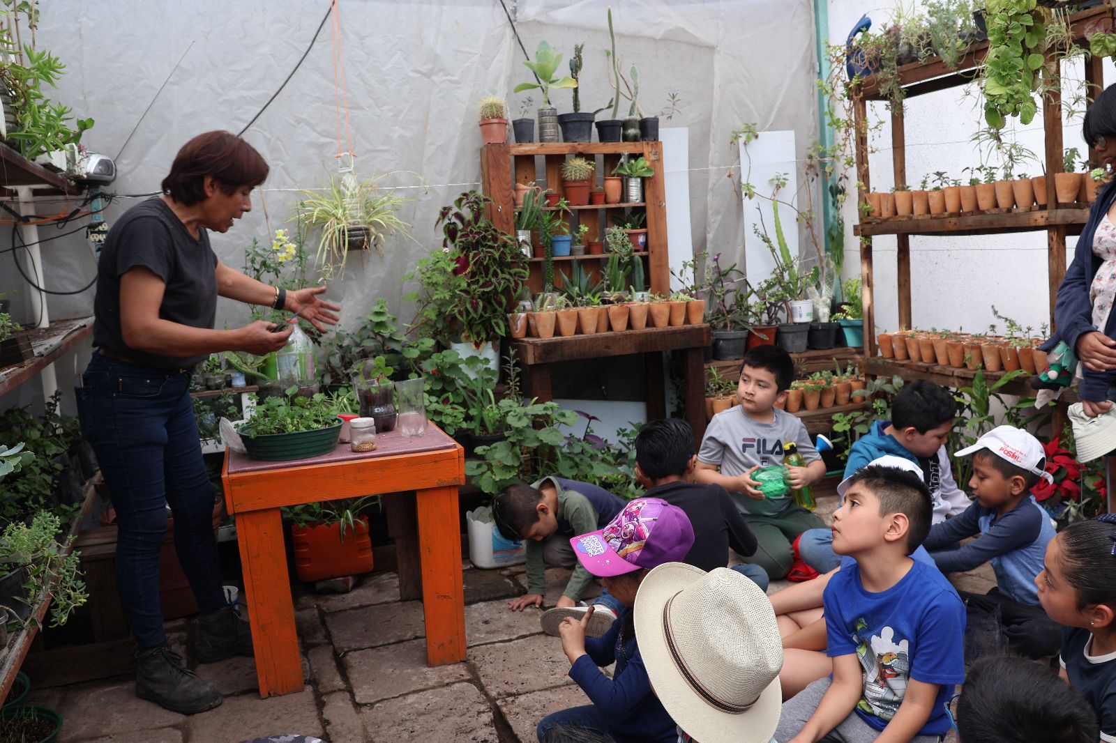 • Agentes del Escuadrón de Bienestar Infantil Municipal participaron en un taller de horticultura en Casa Colorada.