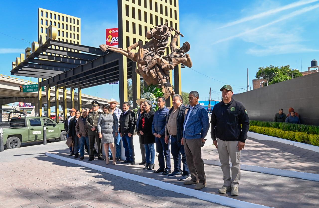 El evento fue encabezado por el Secretario General del Ayuntamiento, Benjamín Pérez Álvarez, en representación del presidente municipal, quien estuvo acompañado por el oficial mayor Luis Gerardo Ruiz Ibarra, la directora de Educación y Acción Cívica Municipal, Velia Guadalupe Castro Granja, y el director de la Guardia Civil Municipal, Aristarco Serna Piña, además de autoridades educativas, agrarias y militares, durante la ceremonia se rindió una guardia de honor, con el toque solemne de la banda de guerra, y se contó con la participación de alumnas y alumnos de la Secundaria Graciano Sánchez.