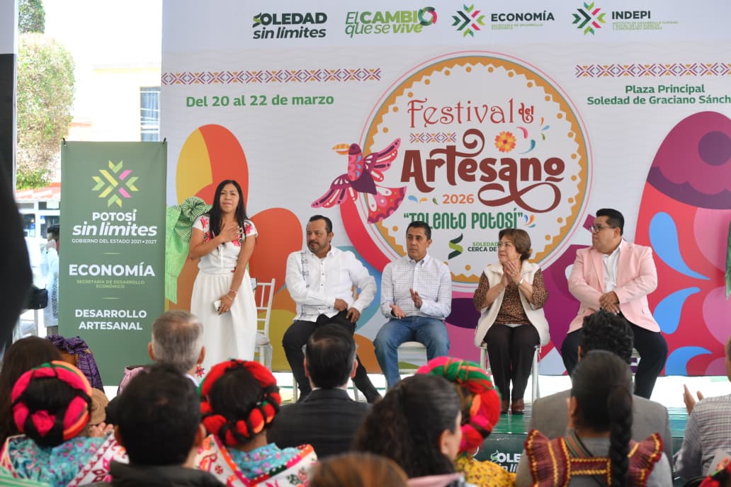 Con la participación de artesanas y artesanos de las cuatro zonas del Estado de San Luis Potosí, el centro de Soledad de Graciano Sánchez se llenó de color, tradición y orgullo, con la inauguración del Festival del Artesano “Talento Potosí” 2026, que promueve la identidad local, el desarrollo económico regional y el reconocimiento al talento y creatividad de las manos artesanas; el evento fue encabezado por el secretario General del Ayuntamiento, Benjamín Pérez Álvarez y el titular de la Secretaría de Desarrollo Económico del Estado, Jesús Salvador González Martínez, así como representantes del sector privado y civil.