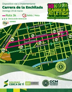 La Dirección de Seguridad Vial y Movilidad de Soledad de Graciano Sánchez informó que desplegará un dispositivo de prevención con motivo de la onceava edición de la tradicional “Carrera de la Enchilada 2026”, que se llevará a cabo el próximo domingo 29 de marzo en Cabecera Municipal. El operativo tiene el objetivo de brindar seguridad y protección vial a las y los asistentes, así como realizar cierres y habilitar rutas alternas para agilizar el tráfico y reducir riesgos.