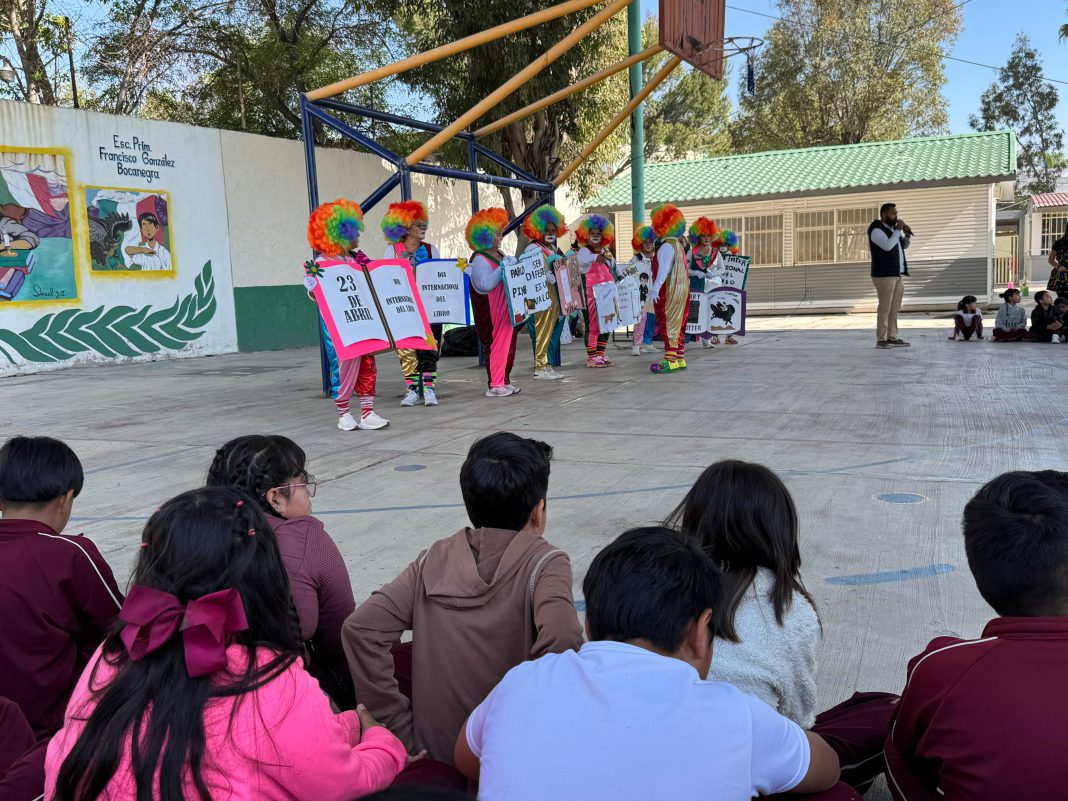 En el marco del Día Internacional del Libro, este 23 de abril, el Ayuntamiento de Soledad de Graciano Sánchez, a través de la Coordinación Municipal de Bibliotecas, inició una jornada de fomento a la lectura en la Escuela Primaria “Francisco González Bocanegra”, en el fraccionamiento Las Palmas, con el objetivo de despertar la imaginación, el pensamiento y la creatividad en la niñez, fortaleciendo su desarrollo educativo con acciones cercanas a las familias y atendiendo la encomienda del Alcalde Juan Manuel Navarro Muñiz.