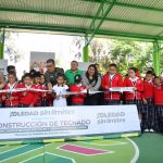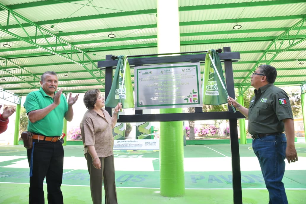 Juan Manuel Navarro Muñiz, Alcalde de Soledad de Graciano Sánchez, inauguró la construcción de un techado con cubierta metálica en la Escuela Primaria “José María Morelos y Pavón”, ubicada en la Unidad Habitacional Pavón, con una inversión estatal superior a los dos millones de pesos, en beneficio de más de 327 estudiantes; la obra, realizada en coordinación con el Gobierno del Estado, corresponde al techado con cubierta metálica de 15 por 27 metros, que incluye pintura de cancha, instalación de postes de voleibol, porterías multifuncionales y alumbrado, fortaleciendo espacios dignos para el desarrollo de niñas y niños, en apego a la visión de cercanía y atención a las familias.