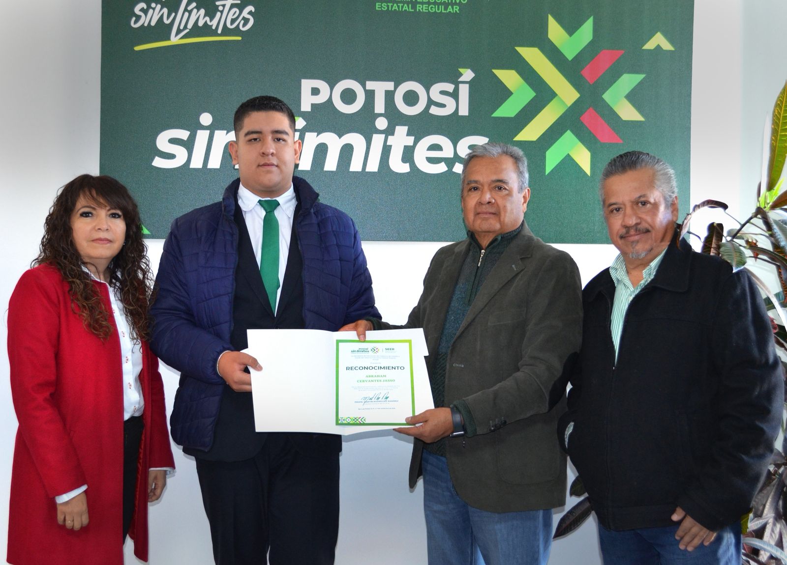 El Sistema Educativo Estatal Regular (SEER), reconoció el destacado logro del estudiante Abraham Cervantes Jasso, de la escuela preparatoria Gabriel Turrubiartes Macías, quien obtuvo medalla de oro en la Olimpiada Estatal de Biología organizada por la Facultad de Ciencias Químicas de la Universidad Autónoma de San Luis Potosí.