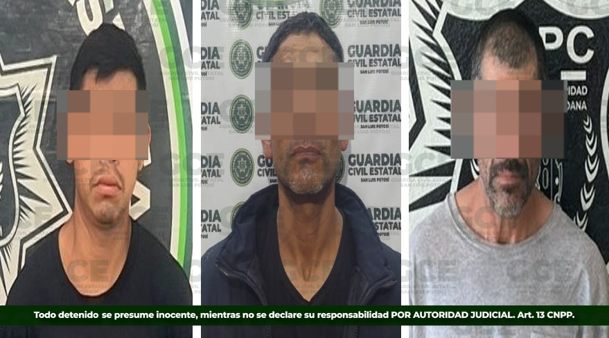 S.L.P.- Agentes de la Guardia Civil Estatal realizaron la detención en distintos hechos de tres hombres por la presunta comisión del delito de portación de armas prohibidas; uno de ellos dedicado a entorpecer las labores de las autoridades policiacas.